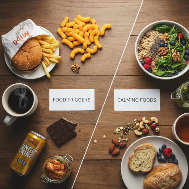 Lifestyle factors, including diet, play a major role in this experience. Certain foods may contribute to increased restlessness or irritability, while others support a calmer state of mind. This is why understanding food triggers and learning better coping skills through CBT can create a strong foundation for reducing anxiety.