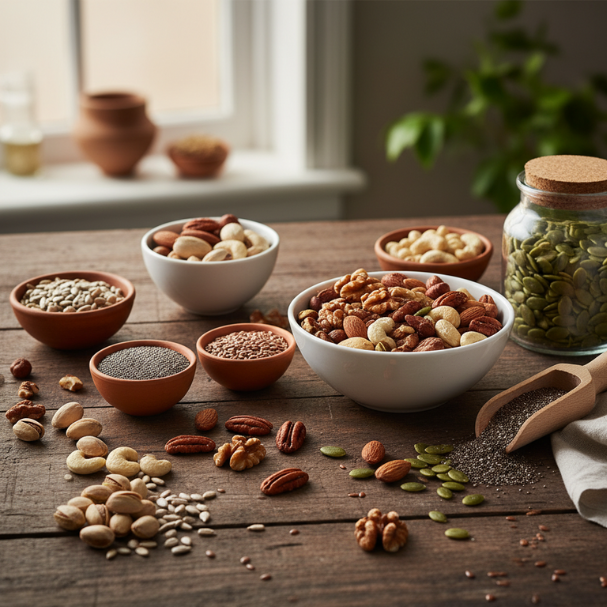 Nuts and seeds provide healthy fats, protein, and essential minerals like magnesium and zinc. While calorie-dense, they help keep hunger at bay and support brain and heart health.