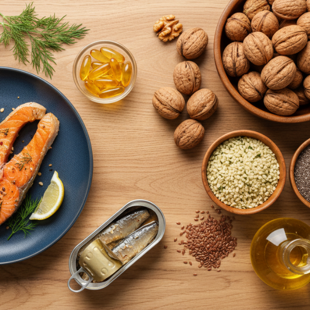 Omega-3 fatty acids are a type of polyunsaturated fat that contributes to the proper functioning of the body, particularly the brain and heart. There are three main types of omega-3s: Alpha-linolenic acid (ALA), eicosapentaenoic acid (EPA), and docosahexaenoic acid (DHA). ALA is mostly found in plant-based sources such as flaxseeds, chia seeds, and walnuts, while DHA and EPA are primarily found in fatty fish like salmon, mackerel, and sardines.
